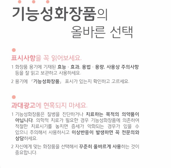 기능성 화장품은 일반 화장품과 다르게 잘못 사용하면 부작용이 발생할 수 있습니다.