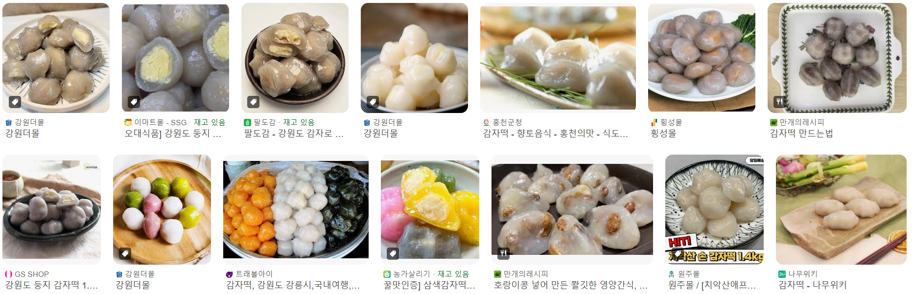 - 강원도: 감자떡은 감자 전분을 주재료로 만들어 투명하고 쫀득한 질감을 자랑합니다.